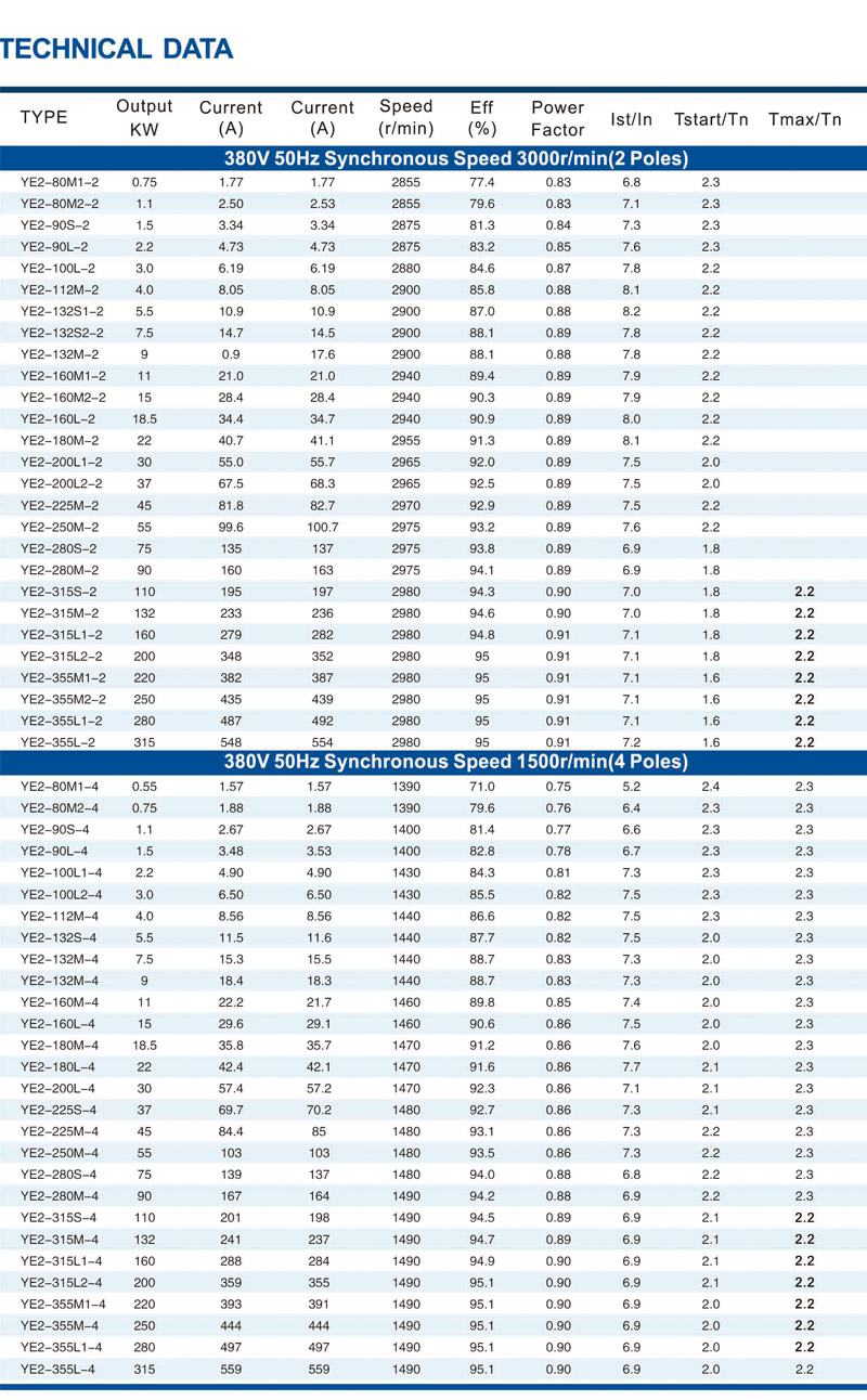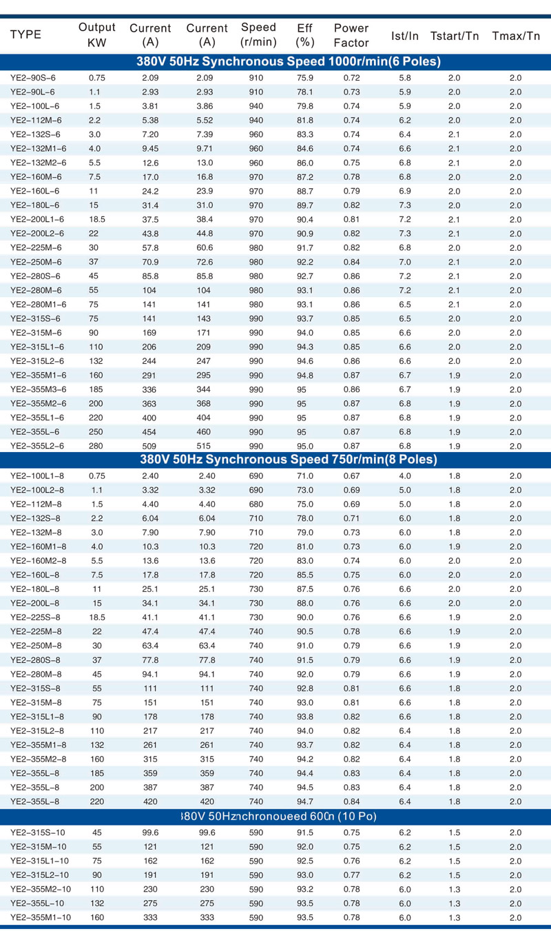 YE2/IE2 Series Three-Phase Asynchronous Motors