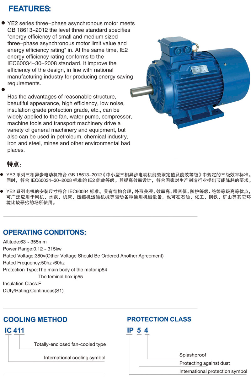 The YE2 series of three-phase asynchronous motors are well-regarded for their high cost-performance ratio, demonstrating exceptional cost-effectiveness. Designed for diverse industrial applications, these motors deliver sustained and reliable power.
